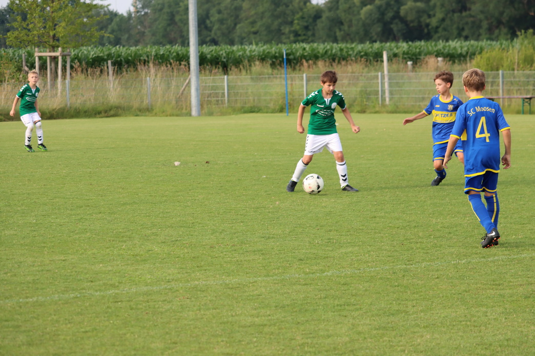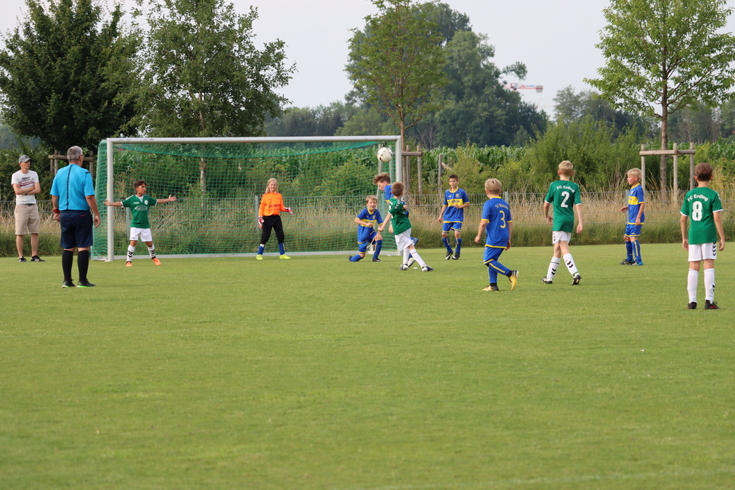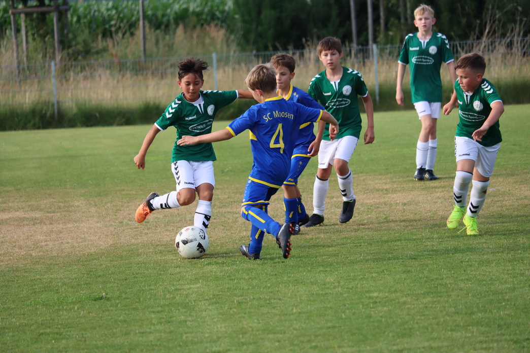 Die E-Junioren zeigten in diesem Spiel schönen Kombinationsfußball und eine gute Abwehrleistung, wohingegen SC Moosen/Vils das Spiel mit langen Bällen nach vorne suchte. Anfangs hatten die Erdinger noch Schwierigkeiten in der Annahme der weiten Abschläge der gegnerischen Torhüterin, aber nach einiger Zeit hatte man sich darauf eingestellt. Darüber hinaus ließ das Verteidigerduo Moritz Veigel und Florian Jones keine nennenswerten Chancen zu. Zur Halbzeit lag man nach Toren von Marsel Petrosino, Emilio Pomaroli und Theodor Huber mit 3:1 in Führung.